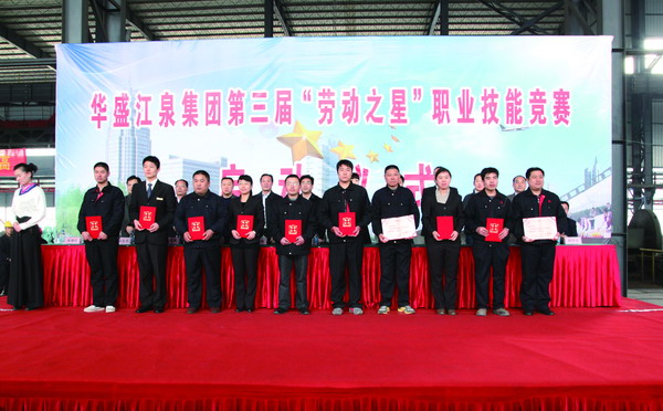 胡冰主持啟動儀式,王廷寶致辭,人力資源和社會保障局局長鄭月慶和楊傳信分別宣讀關(guān)于表彰華盛江泉集團“十佳勞動之星”和“十佳帶徒師傅”的決定,主席臺領(lǐng)導(dǎo)為“十佳帶徒師傅“和“十佳勞動之星“獲得者頒發(fā)證書和獎金,王平作重要講話,彭向榮宣布第三屆“勞動之星”職業(yè)技能競賽正式啟動。