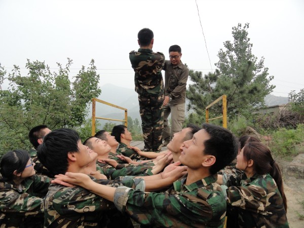 其中令人感觸最深的項(xiàng)目是畢業(yè)墻,又稱逃生墻,源于二戰(zhàn)時(shí)期水手合力爬上四米多高的甲板逃生的真實(shí)經(jīng)歷。一塊4.2米高的高墻,光滑、沒有任何工具,要求所有的隊(duì)員都翻越過去才算勝利。這是最后一個(gè)項(xiàng)目,它把團(tuán)隊(duì)精神發(fā)揮到淋漓盡致。大家采用“疊人墻”的方法,讓身強(qiáng)力壯的隊(duì)友作為底座,先由身手靈活的隊(duì)友踩在他們的肩膀,大家奮力將他們先托上高墻,然后他們在上面接應(yīng),其他隊(duì)友踩著底座隊(duì)友的肩膀,一個(gè)一個(gè)成功地翻越了高墻。整個(gè)過程歷時(shí)不過10分鐘,翻越高墻后,所有隊(duì)員都為自己和團(tuán)隊(duì)的精彩表現(xiàn)鼓掌、歡呼。那一刻的場面激動(dòng)人心。