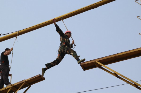在短暫而又緊湊的兩天里,主要進(jìn)行了七個(gè)項(xiàng)目的訓(xùn)練,“破冰”、“天梯”、“高空斷橋”、“信任背摔”、“七巧板”、“圣塔”和“畢業(yè)墻”。整個(gè)訓(xùn)練的過程中,大家熱情高漲,積極參與,不管是令人膽戰(zhàn)心驚的天梯、高空斷橋,還是讓人感動(dòng)不已的信任背摔、畢業(yè)墻,都讓大家在思想上、認(rèn)識上和行動(dòng)上有了不同程度的體會(huì)、磨練和收獲。