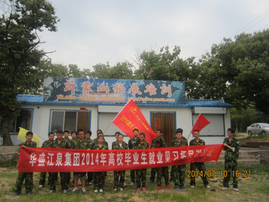 2014年7月6日-10日,華盛江泉集團(tuán)2014屆大學(xué)生訓(xùn)練營成功舉行。本次報(bào)到大學(xué)生共21人,為磨煉大學(xué)生意志、激發(fā)大學(xué)生工作熱情、培養(yǎng)其團(tuán)隊(duì)合作精神、促進(jìn)大學(xué)生的快速成長(zhǎng),集團(tuán)人力資源部制定了以軍訓(xùn)、入職培訓(xùn)、拓展訓(xùn)練為主要內(nèi)容的培養(yǎng)計(jì)劃。