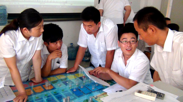沙盤(pán)模擬課程在國(guó)外被統(tǒng)稱(chēng)為simulation課程。由于是仿真實(shí)商業(yè)環(huán)境而開(kāi)發(fā),具有很強(qiáng)的實(shí)戰(zhàn)性,所以被譯作“沙盤(pán)模擬”、“模擬經(jīng)營(yíng)”、“商業(yè)模擬”等。本次集訓(xùn)首次采用用友ERP沙盤(pán)模擬,每組隊(duì)員要分為CEO、財(cái)務(wù)、物流、生產(chǎn)、營(yíng)銷(xiāo)等不同的崗位,由不同的崗位成員配合共同完成企業(yè)的經(jīng)營(yíng),并且六個(gè)小組之間展開(kāi)競(jìng)爭(zhēng)。